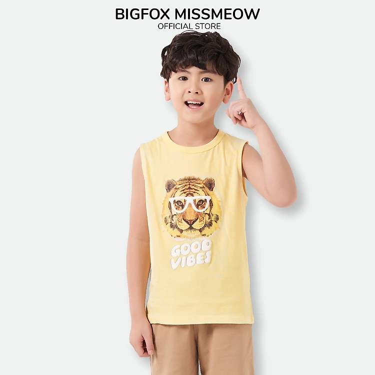 Đồ Bộ Bé Trai Size Đại Bigfox, Bộ Ba Lỗ Bé Trai Mùa Hè Chất Cotton In Hổ GOOD VIBES 3-11