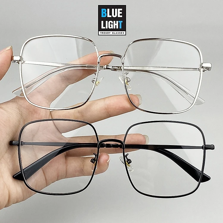 Gọng Kính Cận, Kính Giả Cận Chống UV Mắt Vuông To Gọng Bạc, Đen Kim Loại Viền Lấp Lánh Hàn Quốc - BLUE LIGHT SHOP