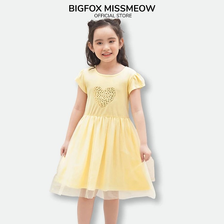 [3-11 TUỔI, 10KG-36KG] Váy Cotton Cho Bé Gái Mùa Hè, Miss Meow, Size Đại. Đầm Trẻ em Phối Lưới In Trái Tim (BF)