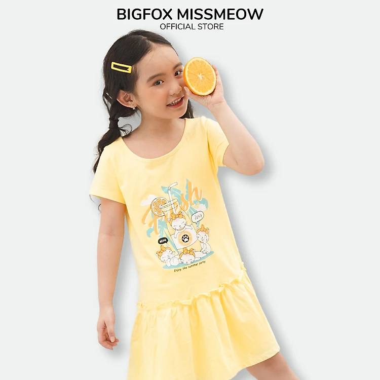 Đầm Cho Bé Gái Miss Meow Tới Size Đại. Váy Cotton Thun Hè Trẻ Em In Hình Mèo 3-11