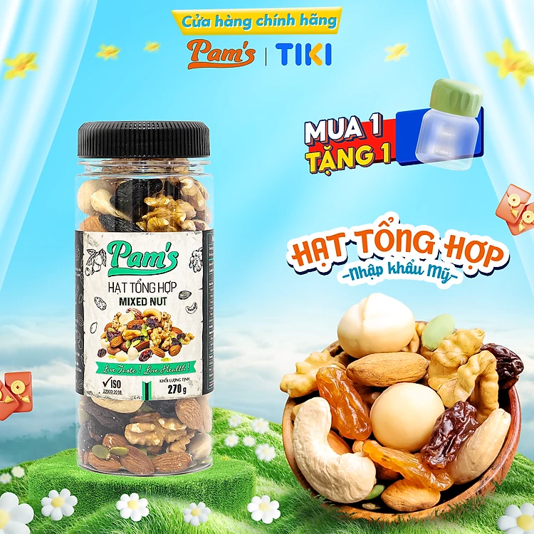 Hạt Dinh Dưỡng Tổng Hợp Mix 6 Loại Macca, Hạnh Nhân, Hạt Điều, Nhân Hạt Óc Chó, Hạt Bí, Nho Úc Pams