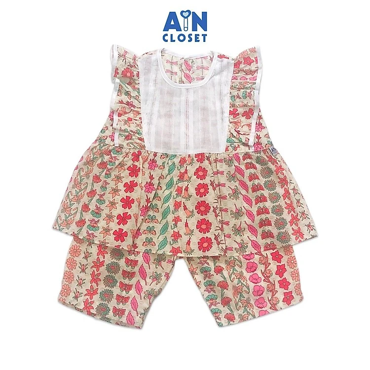 Bộ quần áo lửng bé gái họa tiết Hoa nhiều màu cotton - AICDBGM95EYP - AIN Closet