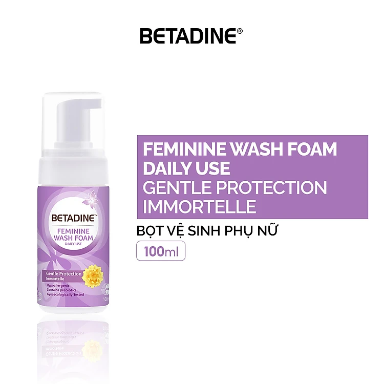 Bọt vệ sinh phụ nữ Betadine Feminine Wash Foam Daily Use Gentle Protection Immortelle 100ml