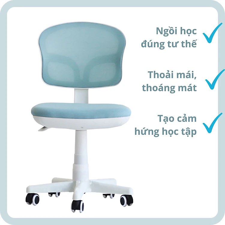 Ghế học bài học sinh tiểu học chống gù chống cận CE1004-M Nội thất Capta Ghế xoay trẻ em lưng lưới nệm vải màu xanh đẹp Study chairs for kids CE1004-M