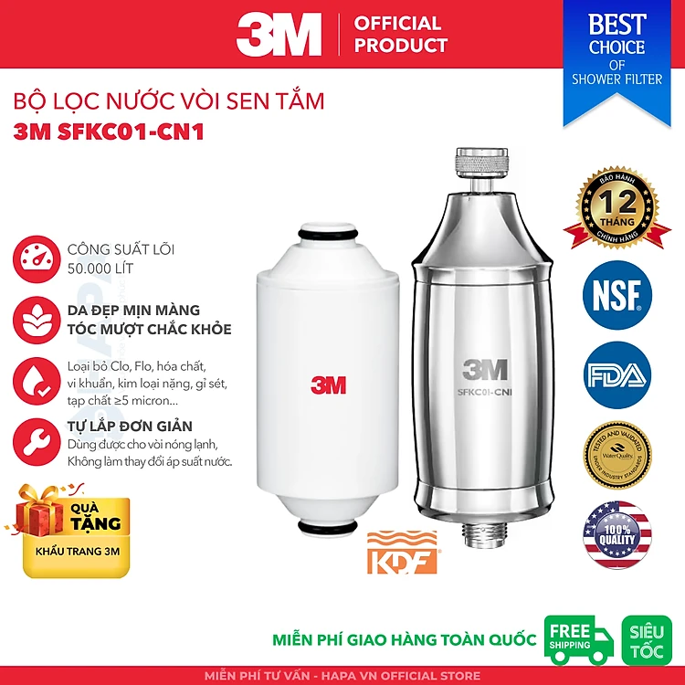Bộ Lọc Nước Vòi Sen Tắm Nóng Lạnh 3M SFKC01-CN1 | 3M HSF-IS Tự Lắp Đặt Dễ Dàng - Hàng Chính Hãng 3M