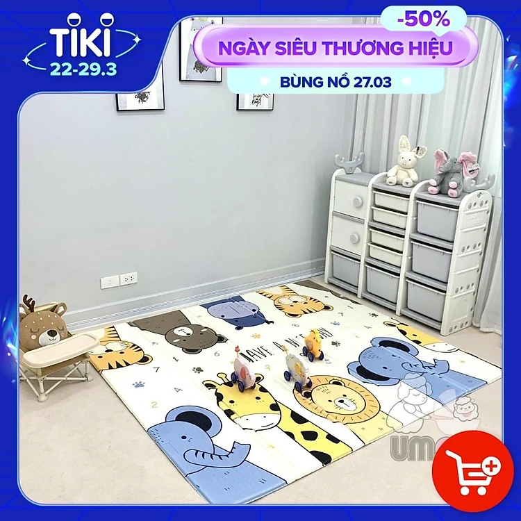 Thảm gấp gọn chống thấm 2 mặt XPE Umoo chính hãng kích thước 180x200cm dày 1.5cm mẫu đường phố