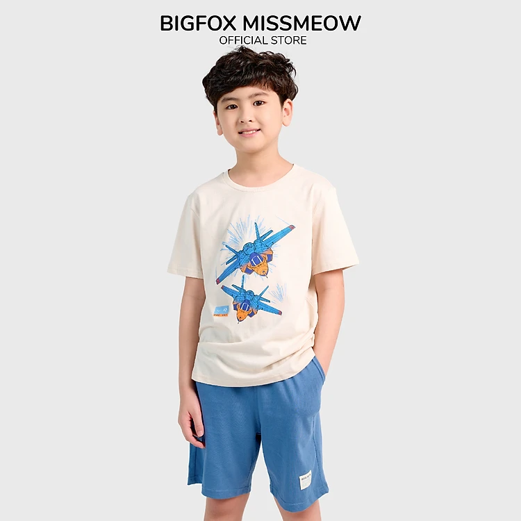 Bộ Quần Áo Bé Trai Bigfox, Bộ Cộc Tay Trẻ Em Mùa Hè Chất Cotton Mát In Hình Máy Bay