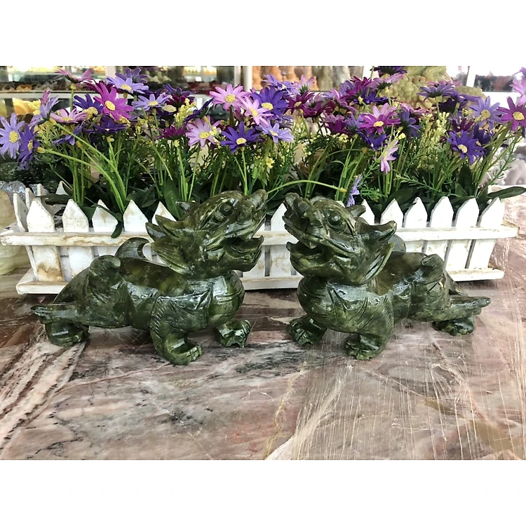 Cặp Tỳ Hưu phong thủy đá ngọc Ấn Độ - Dài 17 cm