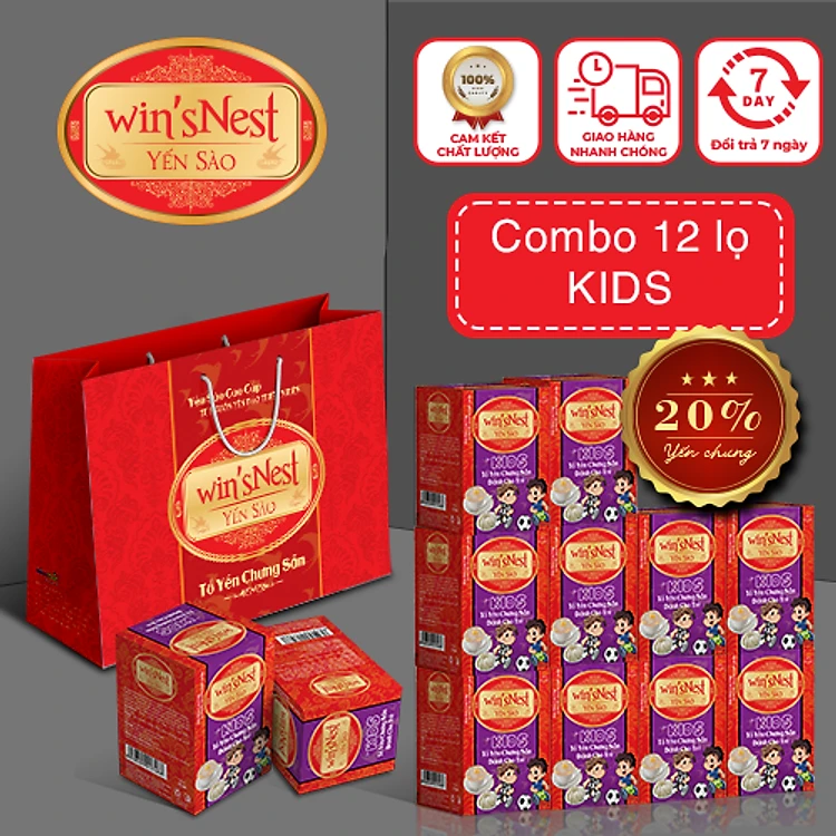 Combo 12 lọ Yến sào cao cấp win'sNest tổ yến chưng sẵn dành cho trẻ em 20% (70 ml/ lọ)