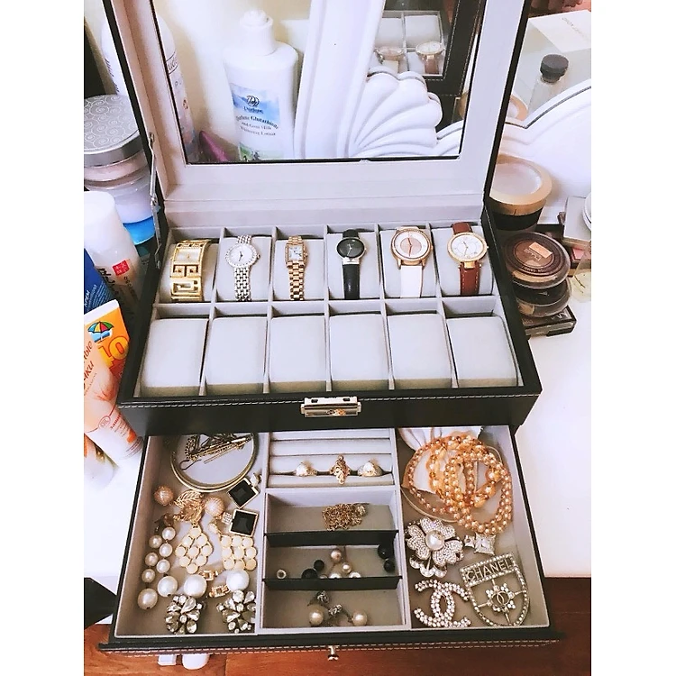 Hộp đựng đồng hồ, trang sức và mắt kính 2 tầng SAIKE SAIKE mã S222 màu đen