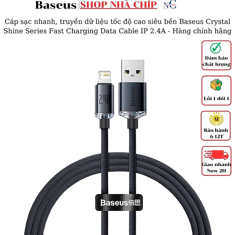 Cáp sạc nhanh, truyền dữ liệu tốc độ cao siêu bền Baseus Crystal Shine Series Fast Charging Data Cable IP 2.4A - Hàng chính hãng