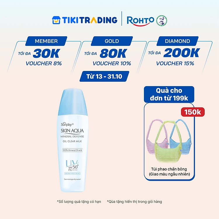 Kem chống nắng vật lý Skin Aqua kiềm dầu, dạng sữa dùng hàng ngày Sunplay Skin Aqua Mineral Defense Oil Clear Milk SPF50+ PA++++ 25g