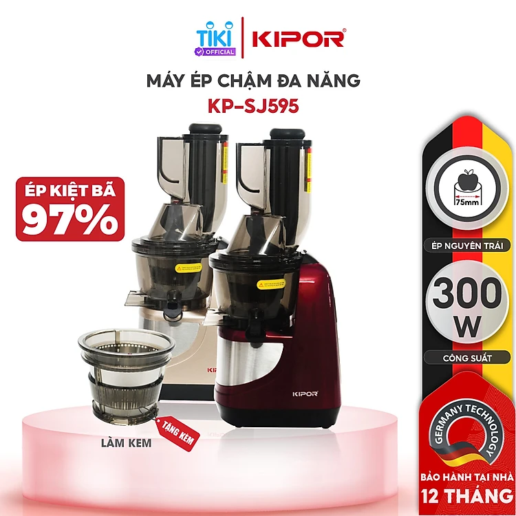 Máy ép chậm KIPOR KP-SJ595 - Chân đế chống rung lắc - Tặng lưới làm kem - Động cơ đồng nguyên chất công suất lớn -Hàng chính hãng