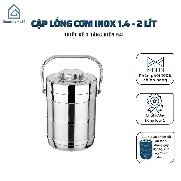 Cặp Lồng Inox 3 Tầng 1.4 - 2 Lít -Cặp Lồng Đựng Cơm Cháo Phở Giữ Nhiệt Cao Cấp - Cà Mên Inox - Hàng Loại 1 - Chính Hãng MINIIN