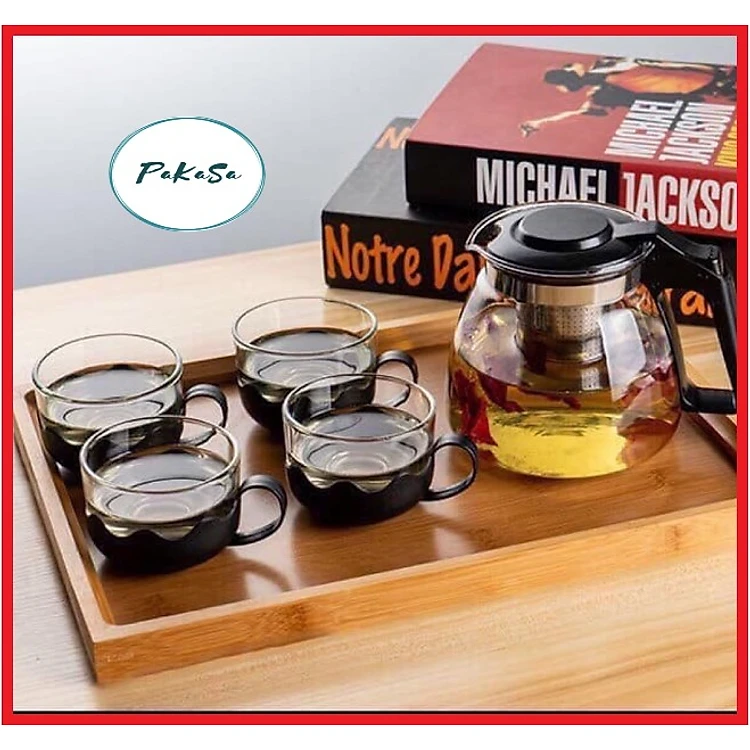 Bộ Bình Trà Thủy Tinh kèm Tách Lưới Lọc Inox 304 Không Gỉ- Tiện Lợi PaKaSa - Chính Hãng