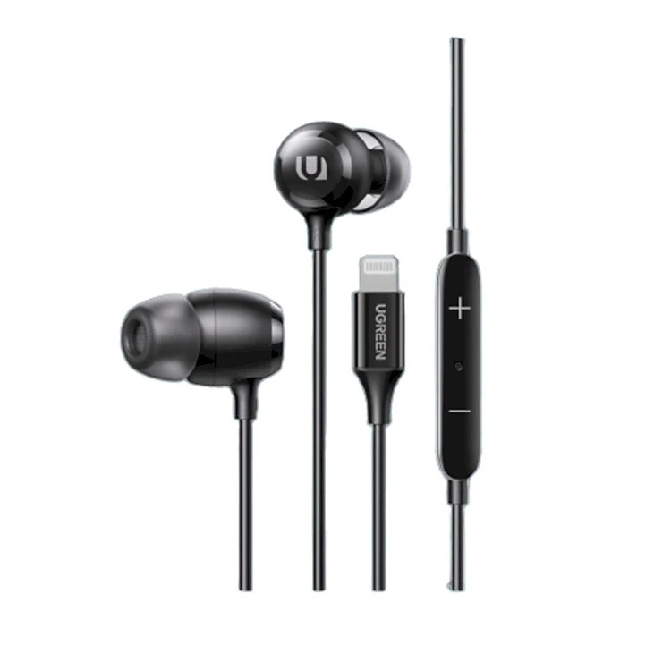 Tai nghe có dây tích hợp micrô và điều khiển âm lượng cổng Lightning Ugreen 30631 Màu Đen EP103 Hàng chính hãng