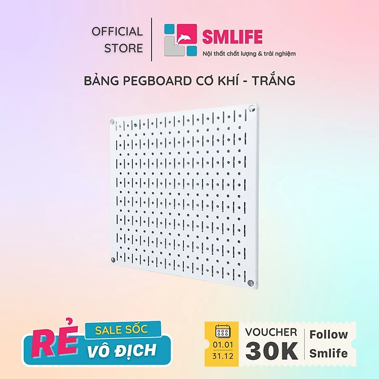 Bảng treo dụng cụ Pegboard vuông 40×40 – Trắng