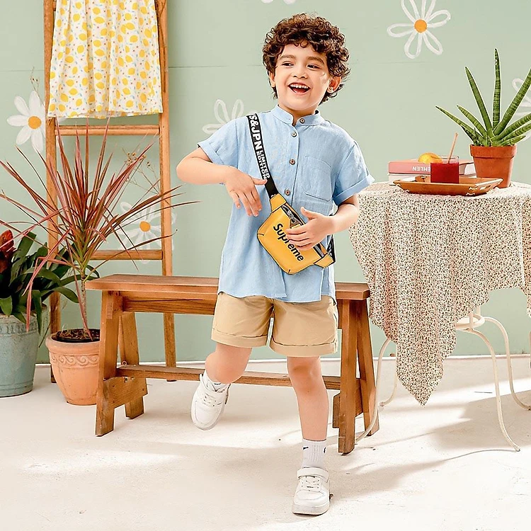 Áo sơ mi bé trai xanh dương cổ Tàu chất linen đũi mềm mịn mát hè thu MamLa