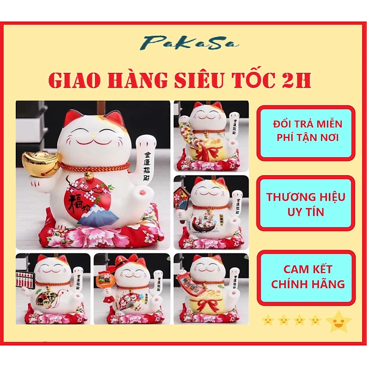Mèo Thần Tài Maneki Neko Vẫy Tay Chiêu Tài Lộc Bằng Gốm Sứ Tặng Kèm Túi Lót PaKaSa - Hàng Chính Hãng