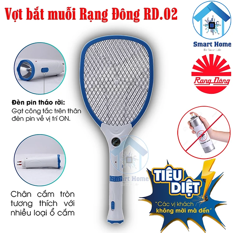 Vợt Muỗi Thông Minh Rạng Đông RD.02 2 Trong 1 Tích Hợp Đèn Pin và Vợt Bắt Muỗi - Hàng Chính Hãng