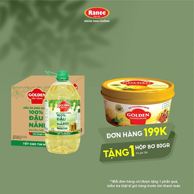 {Đơn 199k tặng hộp bơ 80g} Thùng Dầu Đậu Nành cao cấp Golden 5 lít (5 lít/chai x 4 chai)