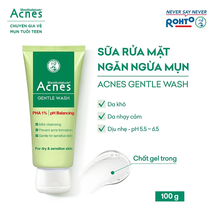 Sữa rửa mặt ngăn ngừa mụn dạng gel Acnes Gentle Wash 100g