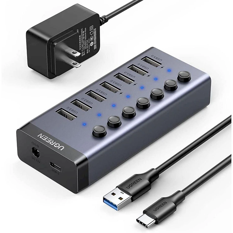 Bo chia Hub USB 3.0 co 7 cong mau den nguon 5V Ugreen 90305 HÀNG CHÍNH HÃNG
