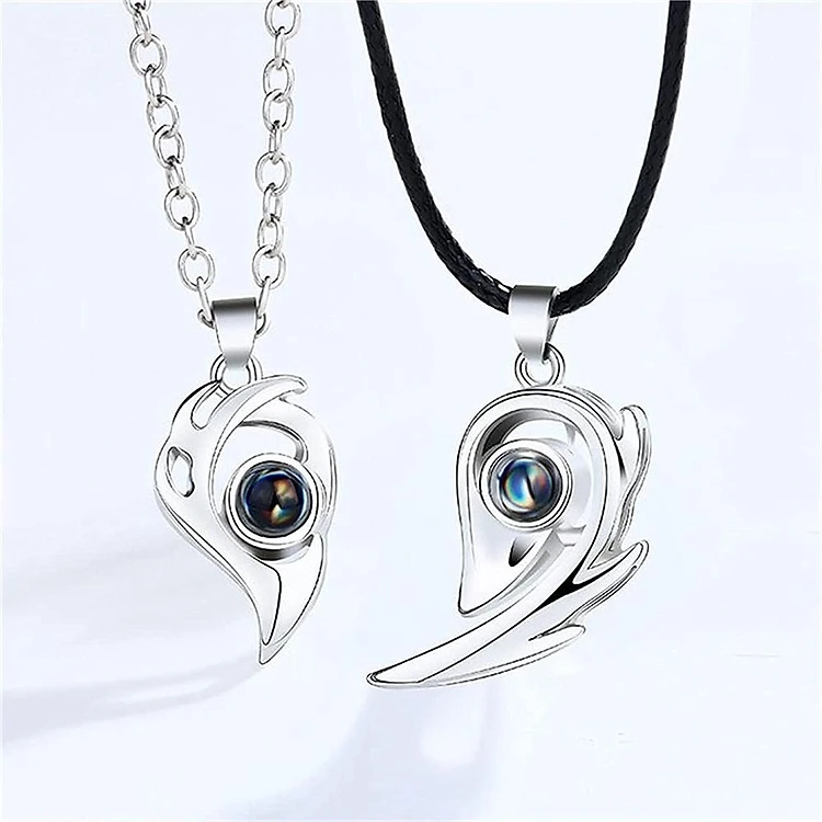 CẶP DÂY CHUYỀN ĐÔI TÌNH NHÂN TRÁI TIM NAM CHÂM 100 NGÔN NGỮ I LOVE YOU