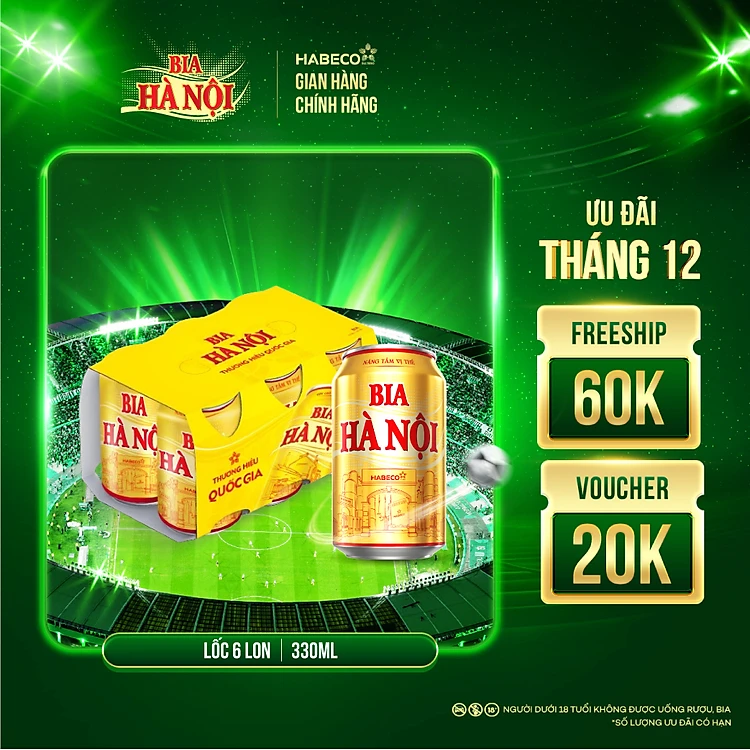 Lốc 6 lon Bia Hà Nội (330ml/lon)