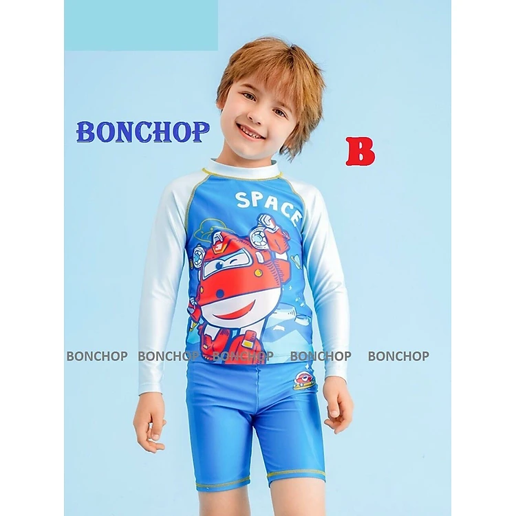 Đồ bơi tay dài cho bé trai -gái hình siêu nhân-Among US-đôi bay từ 10-40kg - độ co giãn tốt
