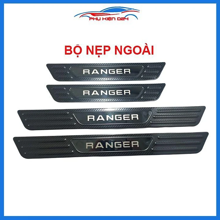 Bộ nẹp bước chân trong ngoài vân Cacbon xe Ranger 2016-2017-2018-2019-2020 chống trầy làm đẹp ô tô