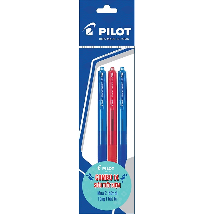 Combo Pilot 14 : 2 Bút Bi Super Grip.G Mực Xanh + 1 Bút Bi Super Grip.G Mực Đỏ