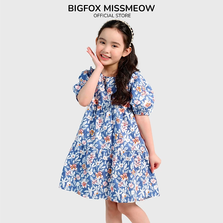 Váy Bé Gái Miss Meow, Váy Thô Cho Bé Tay Xếp Ly Xoè Ba Tầng In Hoa Size Trẻ Em 3-11 Tuổi (BF)