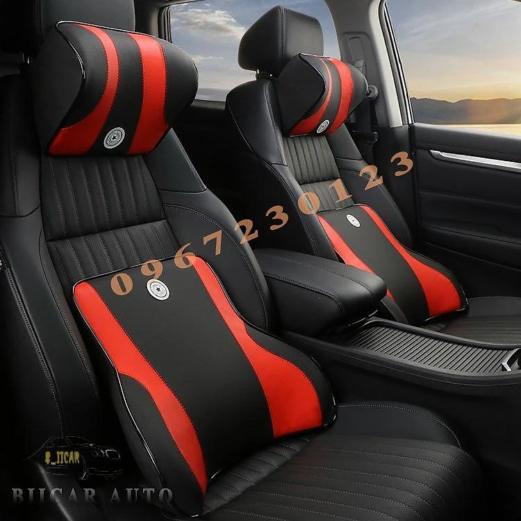 Gối tựa đầu và tựa lưng ô tô cao su non vỏ bọc da nhập khẩu cao cấp