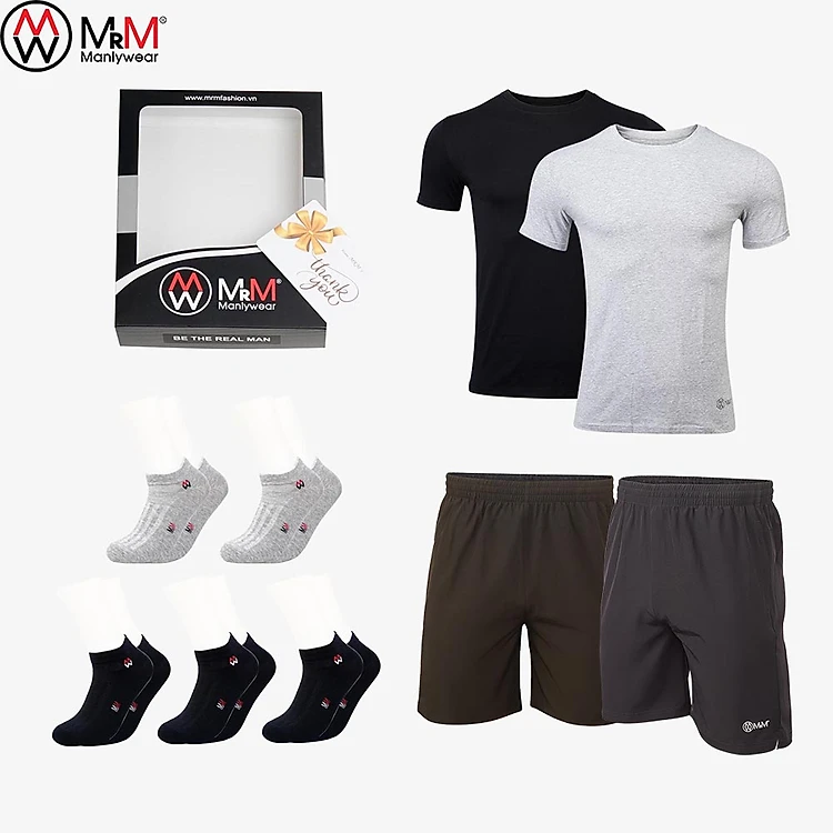 Elegant Box - 2 Áo thun nam, 2 Quần đùi short , 5 đôi tất cao cấp Thương hiệu MRM Manlywear