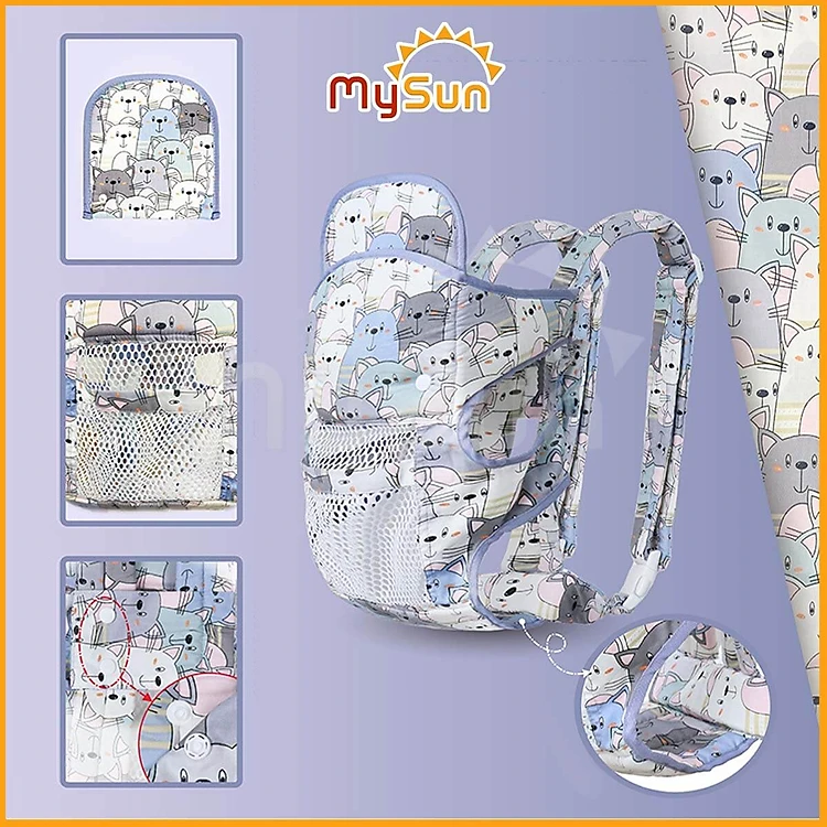 Đai địu vải 4 tư thế có đỡ cổ cho bé sơ sinh, trẻ em 36 tháng tuổi ngồi xe máy an toàn - MySun