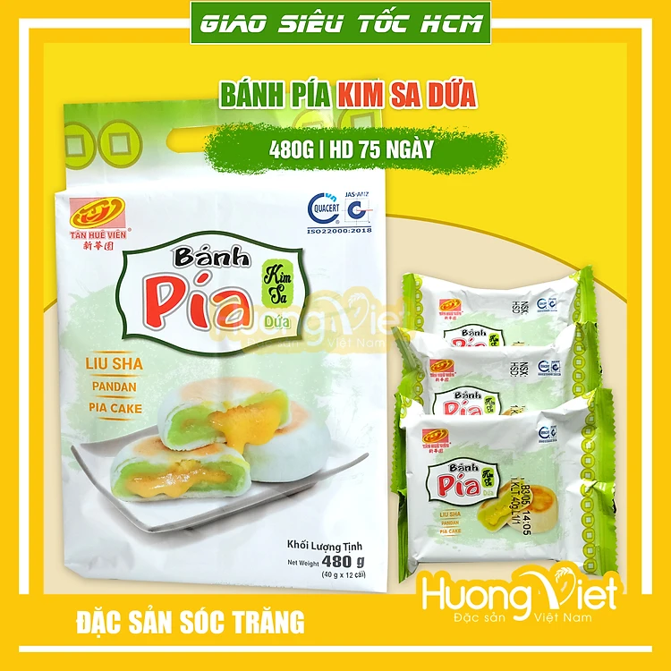 Đặc Sản Bến Tre - Bánh Pía Kim Sa Tân Huê Viên Đậu Xanh Lá Dứa Tan Chảy 480G, Bánh Pía Không Sầu Riêng Trứng Chảy
