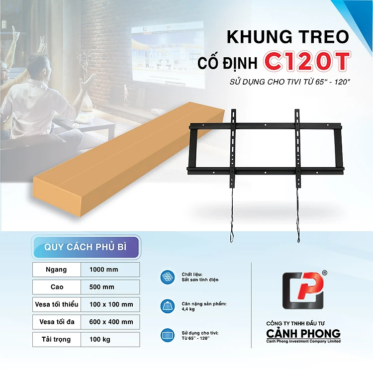 Khung treo tivi cố định Cảnh Phong C120T kích thước từ 65-120 inch - Hàng chính hãng