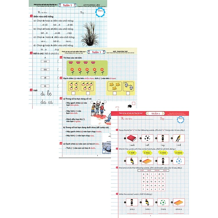 Combo Phiếu Bài Tập Cuối Tuần Môn Toán - Tiếng Việt - Tiếng Anh Lớp 1 (Theo Chương Trình Tiểu Học Mới - bc)