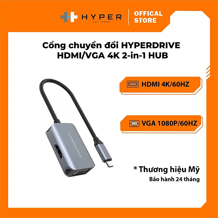 CỔNG CHUYỂN HYPERDRIVE HDMI/VGA 4K60HZ 2 IN 1 HD-C2HV GRAY - HÀNG CHÍNH HÃNG