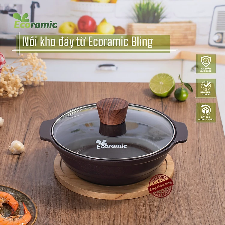 [CAO CẤP] Nồi Kho Bếp Từ Ecoramic Bling – Phủ Ceramic 6 Lớp – Đúc Nguyên Khối – Tặng Đế Lót Gỗ – Chính Hãng Ecoramic