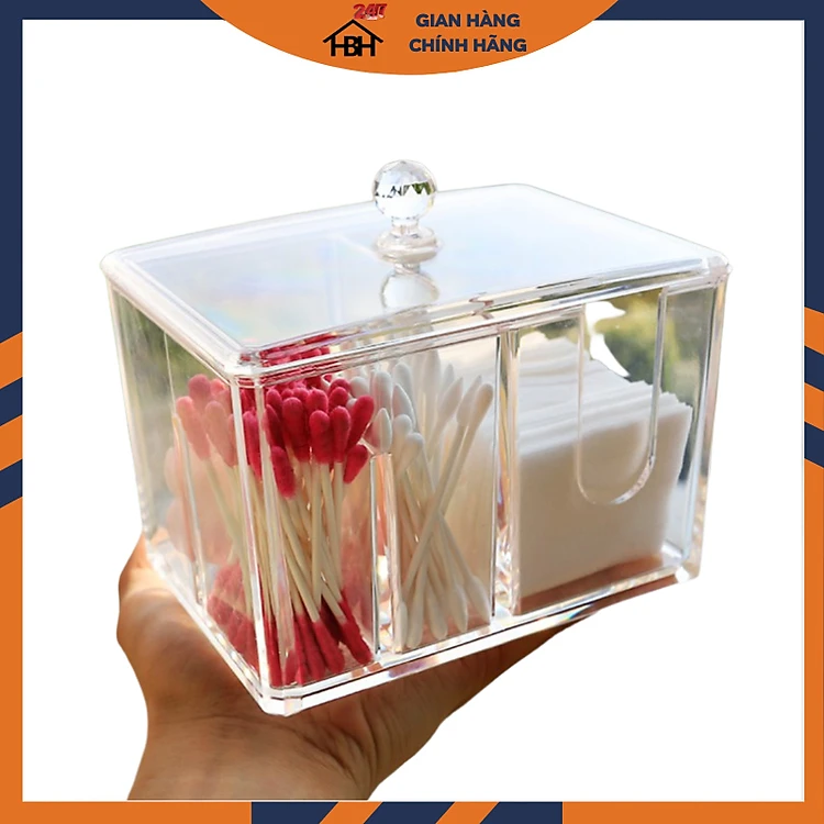 Hộp Đựng Bông Tẩy Trang Và Tăm Bông 2 Ngăn Nhựa Meca Cao Cấp HBH