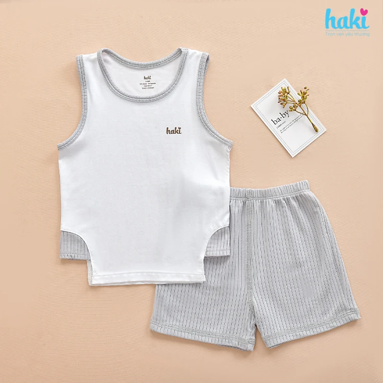 Bộ quần áo sát nách phối màu xẻ sườn vải Modal cao cấp BM012 quần áo hè cho bé; đồ bộ mặc nhà cho bé; set ba lỗ bé trai bá gái sợi sồi siêu mềm mịn HAKI (từ 4kg - 15kg)