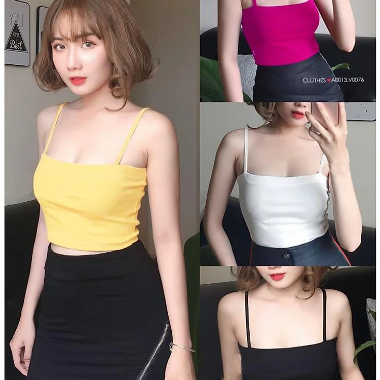 Croptop Áo Thun Nữ Nhiều Màu Thời Trang 24h 2 Dây Sợi Bún Bản 1cm Thun Gân