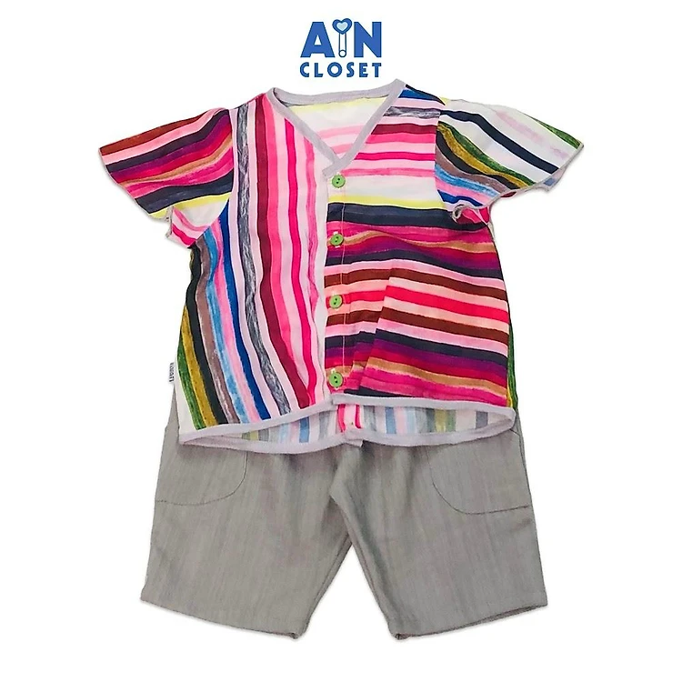 Bộ quần áo lửng bé gái họa tiết Sọc Màu sắc linen - AICDBGIW2MTI - AIN Closet