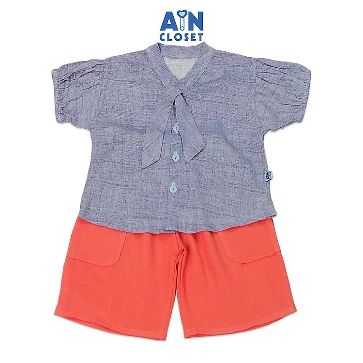 Bộ quần áo lửng bé gái họa tiết Nơ ghi cam - AICDBGZ7VGJ2 - AIN Closet