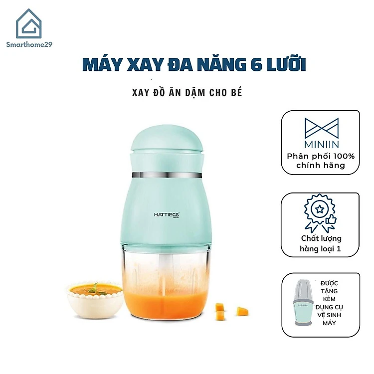 Máy Xay Đồ Ăn Dặm Cho Bé 6 Lưỡi Cối Thuỷ Tinh Hàng Nội Địa Trung Bản Cao Cấp Siêu Mịn Tiện Dụng - Tặng Kèm Dụng Cụ Rửa Máy-Hàng Chính Hãng