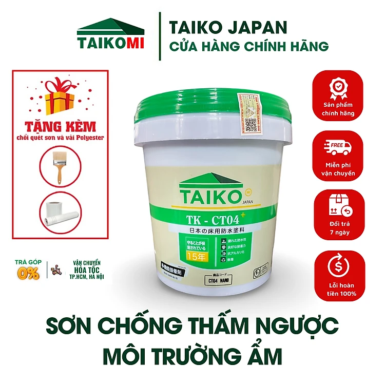 10 Kg Sơn Chống Thấm Ngược, Môi Trường Ẩm Nhà Vệ Sinh, Bể Cá, Bể Âm TAIKO CT4 - Tặng Kèm Vải Kết Cấu