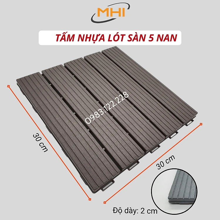 [COMBO 11] Vỉ nhựa lót sàn MHI cao 2 cm, chuyên dụng cho ban công, bể bơi sân vườn PP - kích thước 30 cm x 30 cm x 2 cm