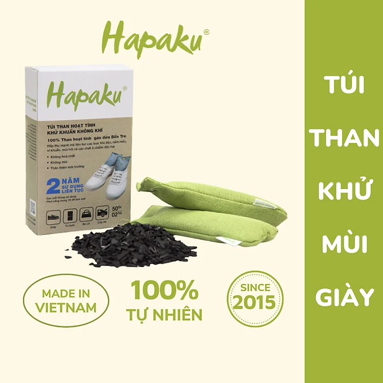 Túi than hoạt tính khử mùi giày - 100% từ gáo dừa Bến Tre (Hộp 2 túi) - Hapaku
